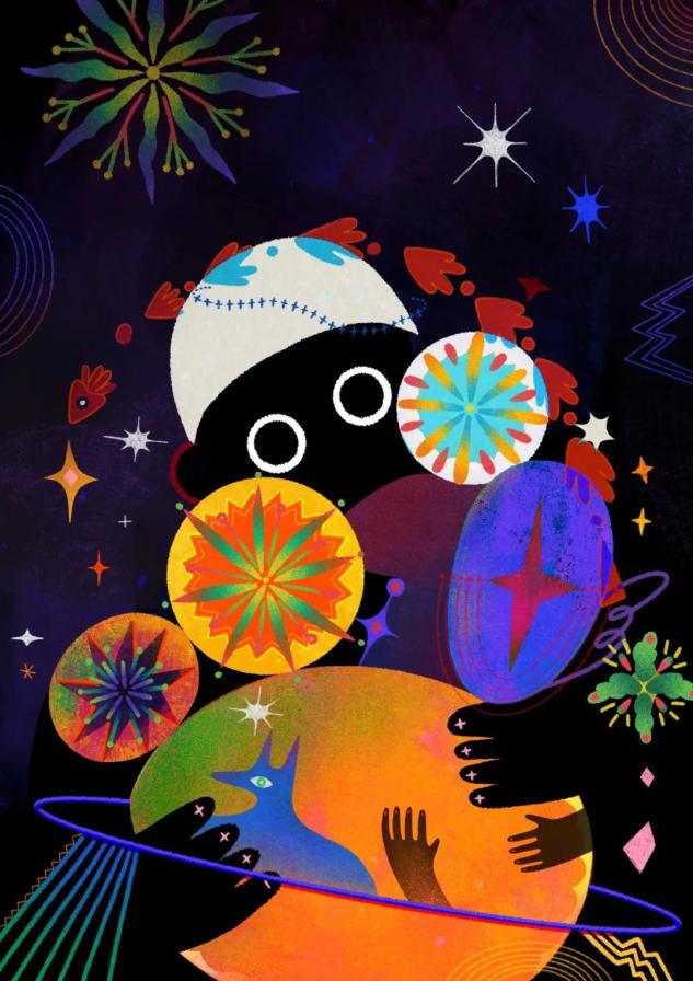 这是一个关于混沌星球的故事,起初生活在这里的人,承载了过多的记忆,被一点点侵蚀破碎。新的生命在轮回中诞生,他会积极的探索世界,感知色彩,被周围的事物所吸引,不断创造新的记忆。一天,他在山洞里发现了一棵铜铃树,树下的种子像宝石一样美丽,他将种子带到外面,种出了自己的宝石花园。从此,这里变得不再黑暗,松石采摘这些宝石,铺下新的道路,准备去更远的地方探寻。原标题:《第一届Yo!深圳 城市⽂化节|参展展商介绍(第一期)》