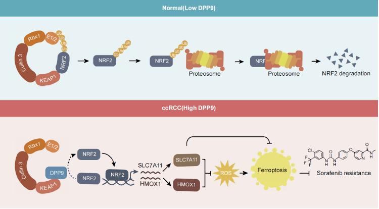 1.生命科学学院王陈继课题组合作揭示肾透明细胞癌中DPP9稳定NRF2抑制肾癌铁死亡从而诱导索拉非尼耐药