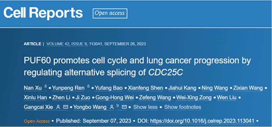 3.基础医学院王勇波团队合作揭示剪接因子调控细胞周期促进肺癌进展的新功能与机制