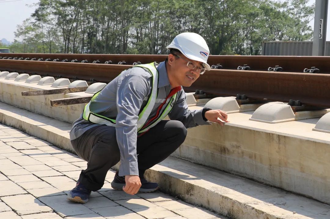 ——今年2月,进驻帕达拉朗站,盯控临近营业线施工安全;4月初,到德卡鲁尔动车所,协助化解影响联调联试的风险;5月中旬,转战卡拉旺站,督促站内剩余工程施工……为确保雅万高铁按计划联调联试,董昭阳一刻不得闲。为摸清WIKA公司声屏障剩余工程量及施工质量情况,董昭阳辗转18公里挨个工点步行检查。其实,他的膝盖患病严重,平时上下楼都要扶着护栏。