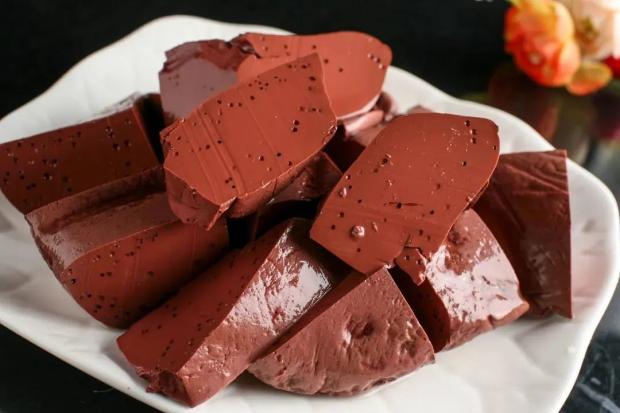 假鸭血吃着会缺乏弹性,像吃胶状物,没有嫩嫩的感觉。