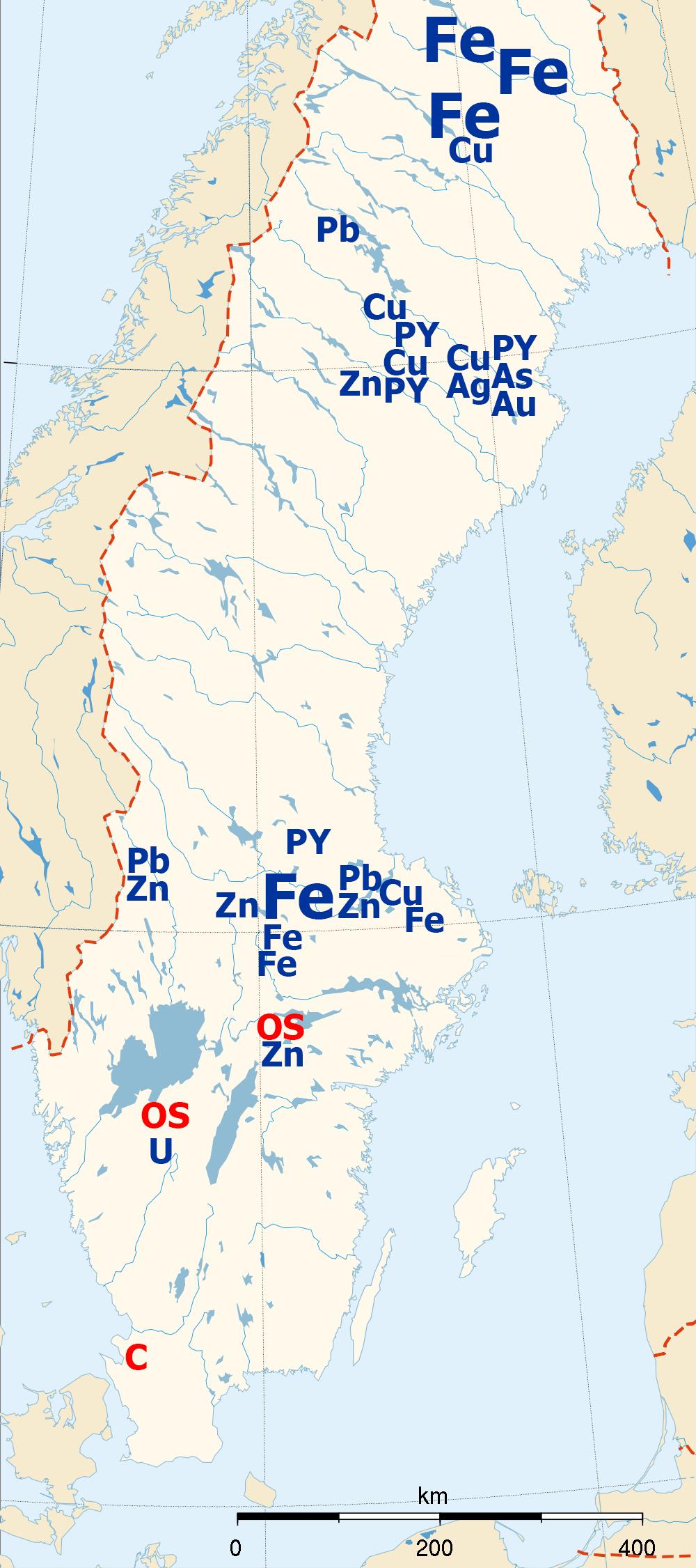 ▼ 瑞典矿产资源分布示意