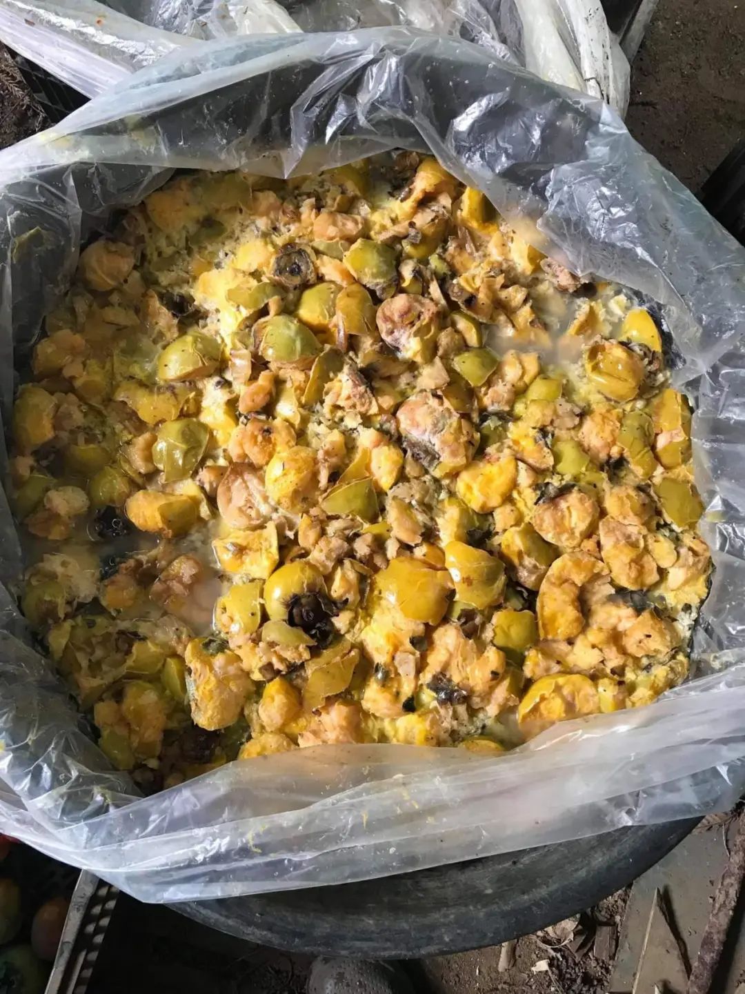 3.将柿子汁过滤出来,放入缸中或玻璃瓶中,加入少量的石灰或碱性物质,然后进行发酵。发酵最佳温度在15℃到25℃之间,如果温度过高,会导致柿子汁变质或者变色;如果温度过低,会导致柿子汁发酵缓慢或者停止;同时要注意控制好发酵的温度,避免阳光直射或者寒冷。发酵最佳时长为一年以上,如果时间过短,会导致柿子汁中的单宁和胶质不足,染色效果不佳;如果时间过长,会导致柿子汁中的水分蒸发,染色液浓缩或者结晶。