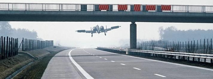 这么说吧,德国高速路面基本是按可承受飞机起降的标准而设计建造的。必要时,只需稍加改良,就可以改为战斗机的起飞跑道。