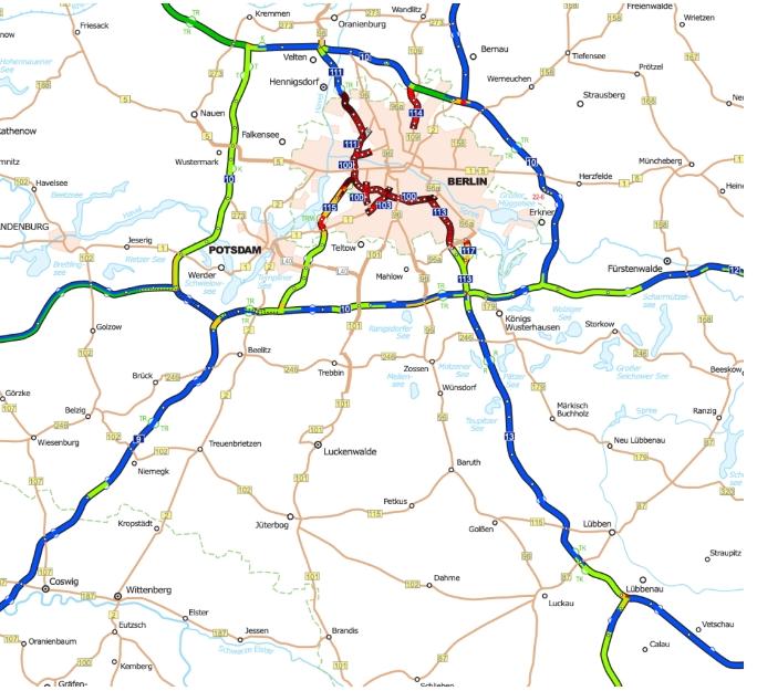 德国高速限速示意图:蓝色路段为不限速,深绿色为130km/h,浅绿色为120km/h而且车主也别抱侥幸心理,因为德国在各个路段限速牌附近都有隐藏的测速仪,针对就是那些无视限速提醒的车主,车主如果开着开着被某个奇怪的红光闪了下……好了,回去等罚单吧,几百欧元已经没了。