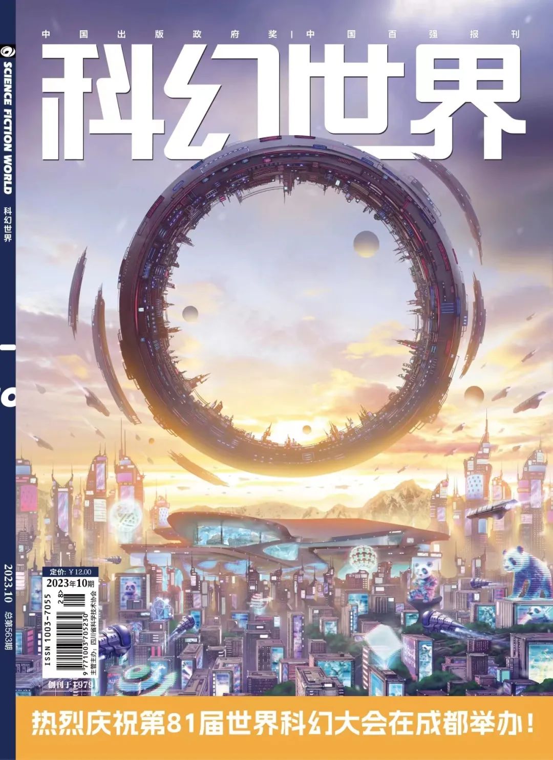 为庆祝世界科幻大会在成都举行,《科幻世界》2023年10月号推出了特别设计的封面。(图/《科幻世界》)谁能想到,科幻文学差点在中国死掉。