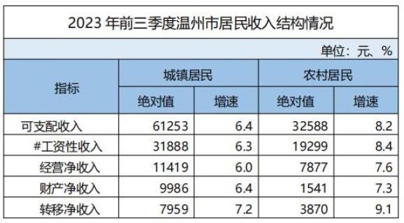 今天,国家统计局温州调查队发布了2023年前三季度温州市居民收入情况报告。