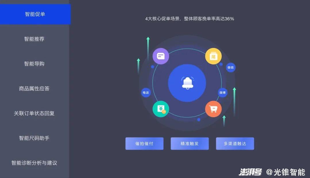 比如京小智的另一个核心功能是“全链路跟单”,包括发货后的物流跟踪、访问后促成下单、付款后主动提醒、会员用户长期关怀等等。