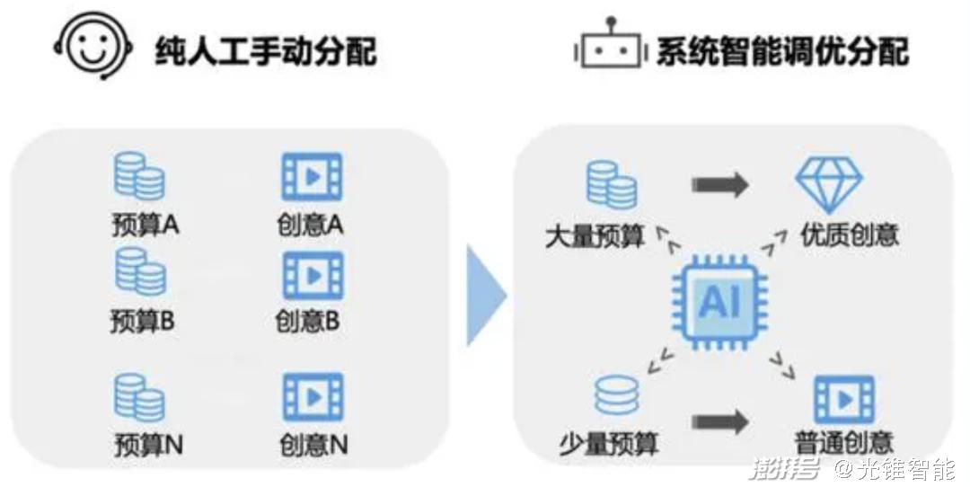智能化营销的到来,摒弃了过去漏斗式的结构,用端到端的方式让整个广告系统变的更直接,中间的创意、决策过程都交给大模型,用扁平的方式减少成本消耗。