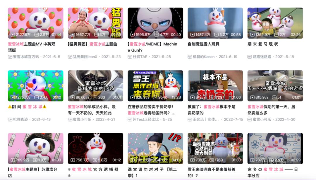 虽然蜜雪冰城是一个有着优秀历史的企业,但雪王这个形象,却是在2020年代开始充分活跃起来的。关于雪王的各种表情包,单曲,线下的互动,层出不穷。