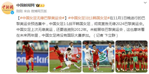 中国女足1比1战平韩国女足,无缘巴黎奥运会