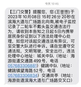 如果群众收到这样的电话和短信证明您驾乘电动车有违法行为