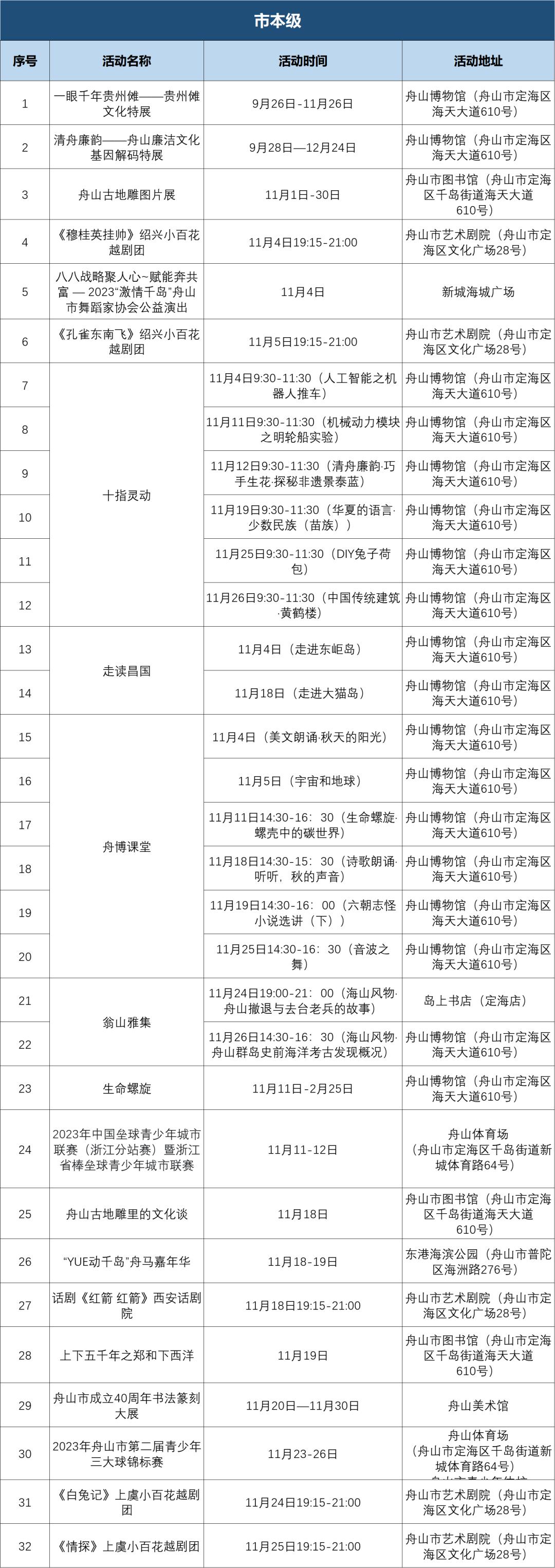 11月,舟山各地有哪些精彩的文化活动?一起来看看吧~01