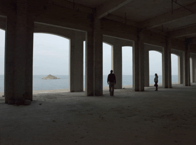 在岛上,爸爸发现了一栋废弃的酒店大楼,翻过半米多的护栏,可以看见大海。我和爸爸一起跨入了那个荒废的区域,妈妈很抗拒,她讨厌冒险。我回头喊,“妈妈,那里可以看到大海”。她看了一眼我们,突然把手伸给爸爸,爸爸把她拉了过来。