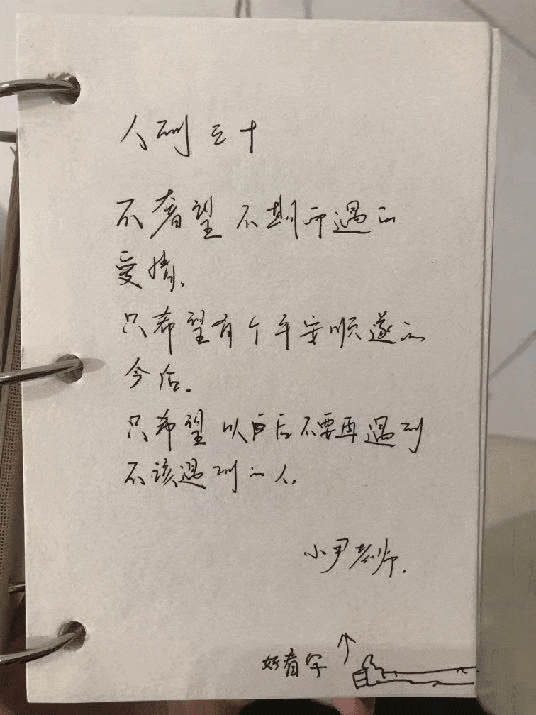 还有一对,抱着外孙一起合影,如果不说的话根本看不出是离婚夫妻。阿姨拍照时想靠在叔叔身上,叔叔害羞就不让她靠。阿姨最后写:“想靠靠不住。”叔叔则写:“生活更美好。”