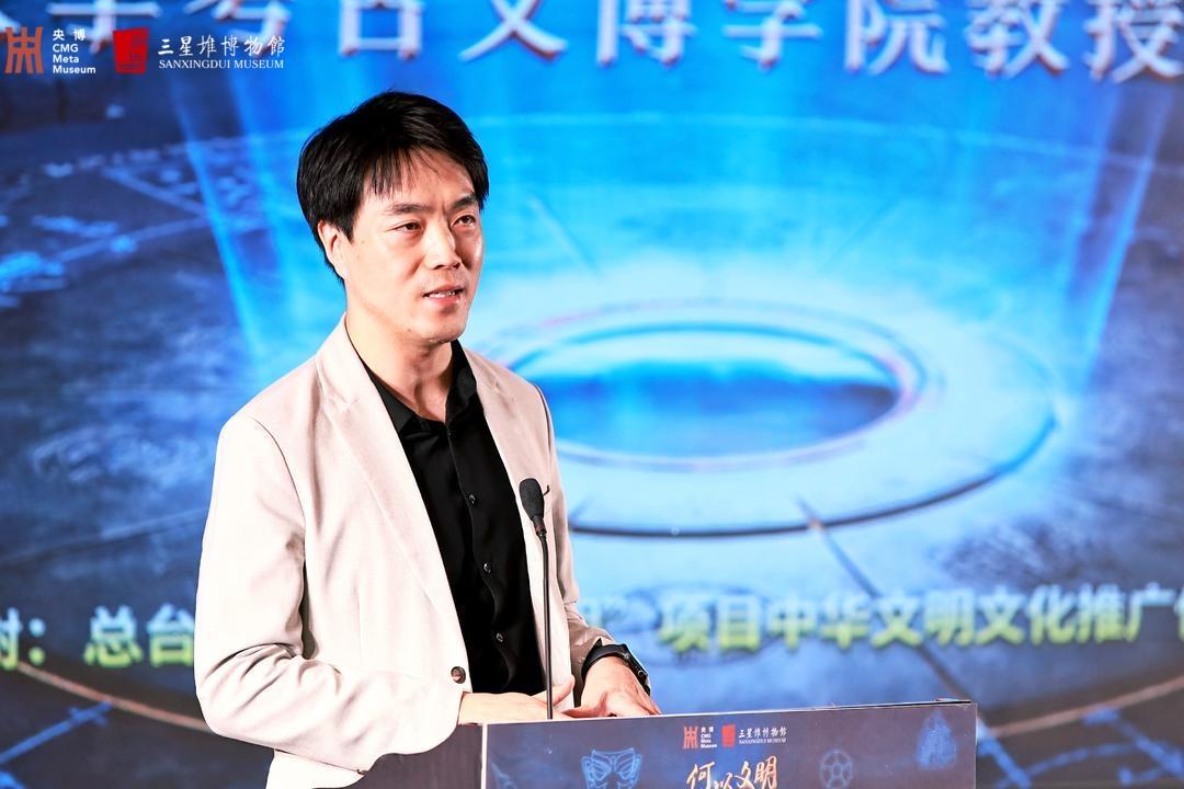 中央广播电视总台央视网副总经理、央博公司董事长魏驱虎魏驱虎在致辞中表示,“央博”数字平台自今年5月27号推出“何以文明——中华文明探源工程成果数字艺术大展”以来,用前沿科技开启“寻根之旅”,溯“中华文明”之源。大展融合星际漫游和古今穿越的构思,综合运用了高精三维虚拟建模、沉浸式数字交互空间、开放式云渲染引擎架构、实时光影渲染等多项新技术,构建移动化、全沉浸、交互式的“文明体验数字化”空间。“何以文明——古蜀之光三星堆”的上线,是对历史召唤的呼应,召唤着我们继续去探寻祖先留下的那些未解之谜,也召唤着我们用科技力量让中华文明焕发出新的生机与活力。