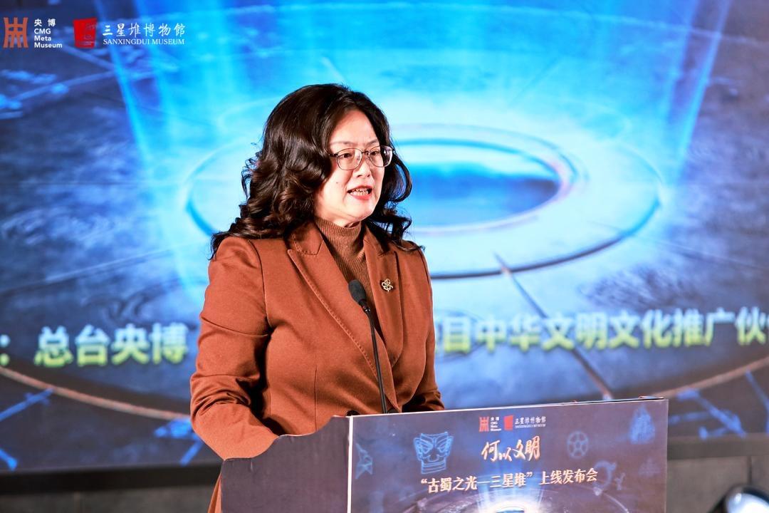 11月3日,由中央广播电视总台、国家文物局指导,中央广播电视总台“央博”数字文化艺术博物馆主办、央视网承办、三星堆博物馆协办的何以文明“古蜀之光——三星堆”上线发布会在三星堆博物馆举行。四川省德阳市委常委、宣传部部长吴成钢,广汉市委副书记、三星堆博物馆景区党工委副书记、管委会主任王居中,四川省德阳市委宣传部副部长马军,广汉市委常委、宣传部部长阙显凤,四川省文物考古研究院院长唐飞,四川大学考古文博学院教授黎海超,中央广播电视总台四川总站党委书记、副站长樊承志,中央广播电视总台央视网副总经理、央博公司董事长魏驱虎,总台央博公司总经理冯宇,剑南春(集团)有限责任公司董事、工会主席王剑,剑南春销售公司常务副总经理马强出席活动并发表致辞及演讲。