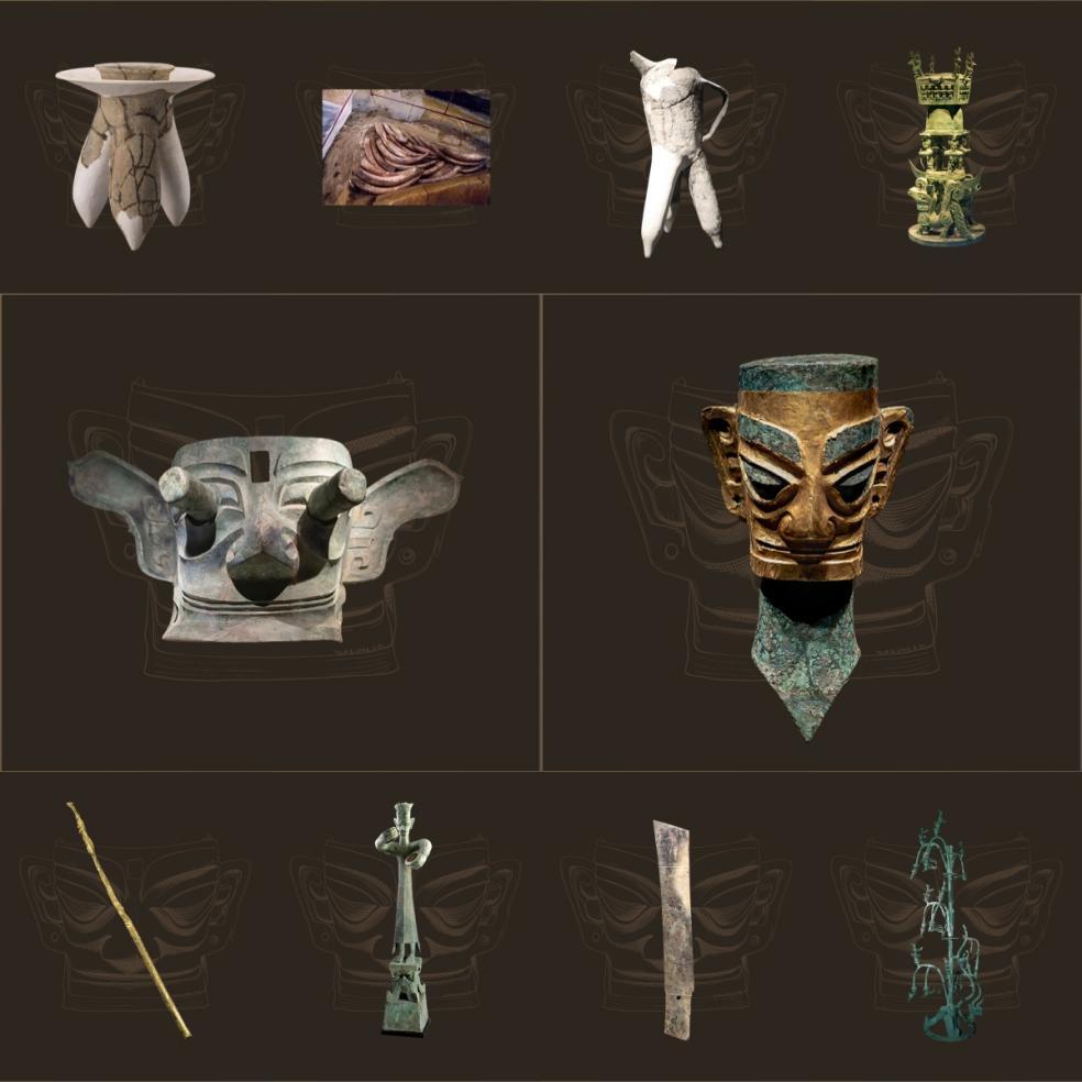 图 | 央博“何以文明”大展“古蜀之光-三星堆”遗址古今传承卡牌三星伴月,遥看古蜀!中外文明集散一隅,诸般造化汇于一地,蚕丛纵目丈量天地山川,万古长江孕育富庶天府。金饰镌烁生辉,青铜铸刻神祇,沉睡千年的三星堆遗址何以“一醒惊天下”?