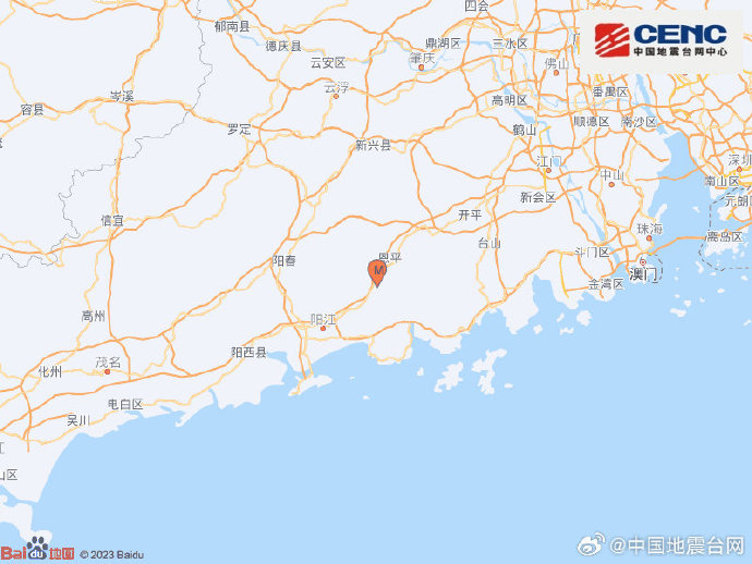 中国地震台网正式测定:11月04日19时24分在广东江门市恩平市(北纬22.08度,东经112.25度)发生4.3级地震,震源深度8千米。