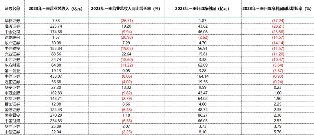上市券商三季度业绩哪家强?