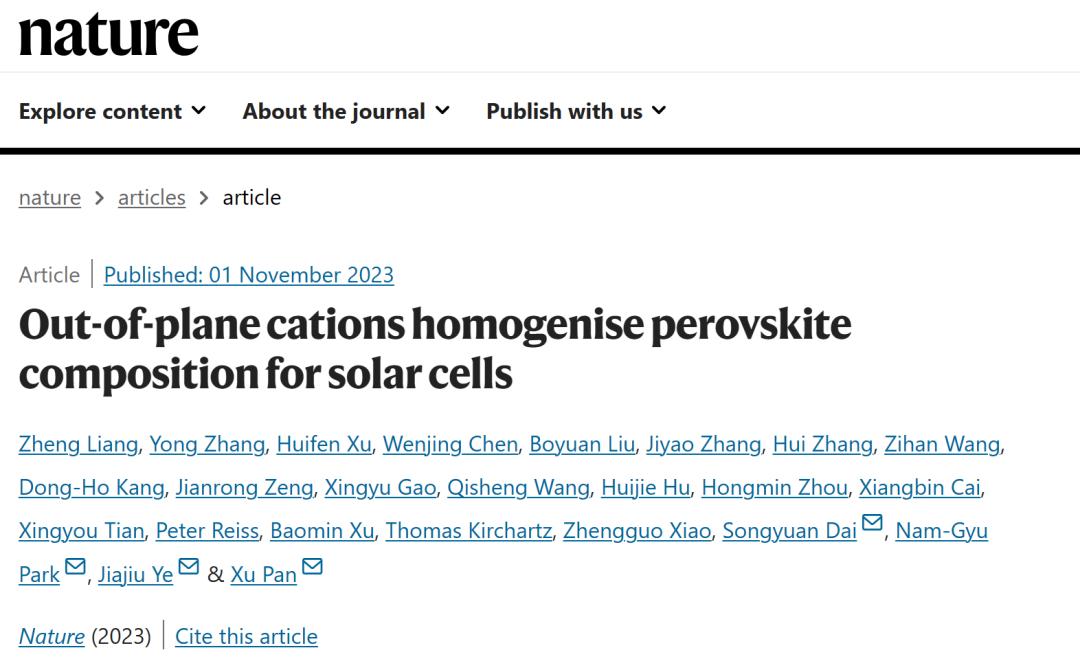 Liang, Z., Zhang, Y., Xu, H. et al. Out-of-plane cations homogenise perovskite composition for solar cells. Nature (2023).