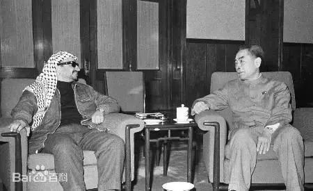 阿拉法特与周总理会见结束时,我站起身来,并伸出手去要与他握手告别,没想到他却笑着连说:“不,不。”我一时不明白他的意思,但很快就被他非同寻常的热情友好及谦和可亲的举动深深感动了。他说了几个“不”字后,就轻轻拍了拍我的肩膀,说不忙握手道别,他要送送我,接着就拉着我的手向会客厅大门走去。