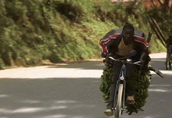 真正的大师,从来不挑装备。没有上过一天学的奥德彪们,无师自通完美掌握空气动力学并纯熟应用。半报废的二八大杠,在山路上一次次突破物理极限,被奥德彪们驯服得明明白白,基基齐山车队总指挥一声令下,香蕉军团有条不紊,目标一致,保持相对静止,向山下冲锋,训练有素程度比起布隆迪政府军有过之而无不及。