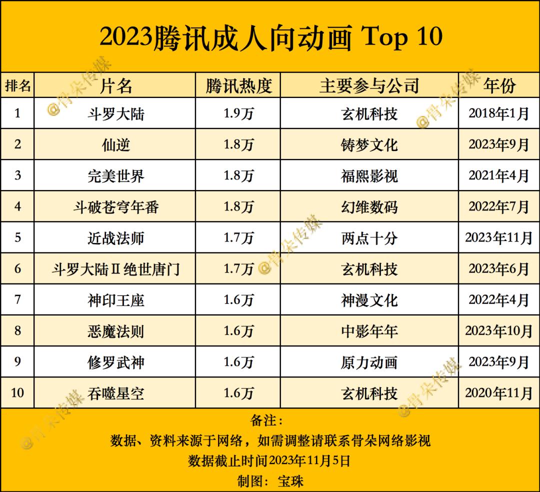 但就目前“2023年腾讯视频动画作品Top10”榜单的情况来看,玄机科技入榜的三部作品均为腾讯系IP改编动画,“背靠大树”对玄机科技来说,不算蒙冤。