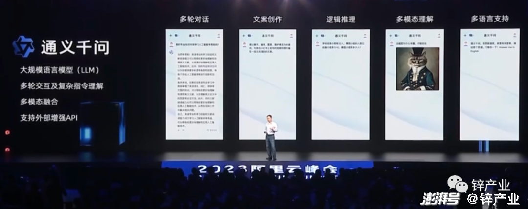 锌产业认为,作为蔡崇信、王坚两位重回舞台见证阿里新时期的这场云栖大会,最重要的是,作为阿里大模型研发一号位的周靖人,明确了大模型时代阿里的定位: