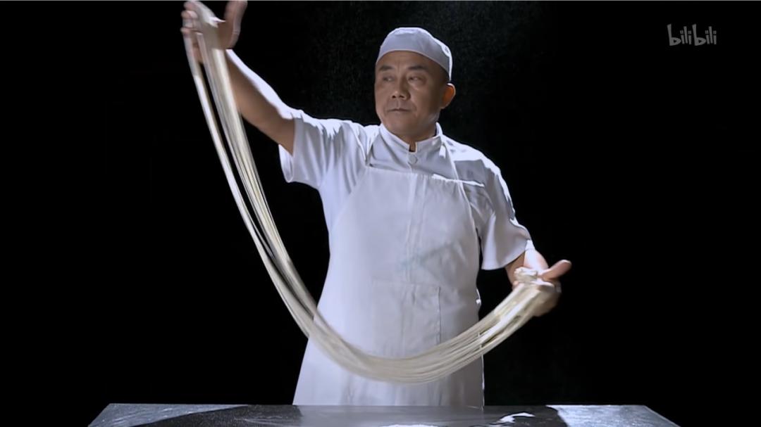 纪录片《舌尖上的中国》想当年,我到上海的第一个早晨,在浦东香格里拉酒店的早餐自助餐上第一次目睹手工拉面时就被惊艳到了,从那之后,学做拉面就成了我的一大梦想。只见厨师抓住一长条软绵绵的面团的两端,双手一振一荡,大开大合,利落地把长面团抻出活力,再啪一声拍落在他身前的桌上。就那么拉扯几下,再随手扔入一锅沸水。简直是魔术啊。