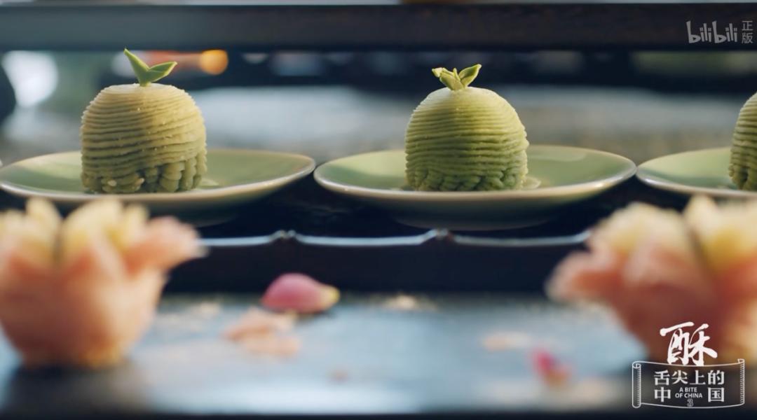 龙井茶酥 纪录片《舌尖上的中国 第三季》江南很多传统的甜味吃食不会像西方的甜点那样叫人发腻,只是有那么一丝幽微的甜,比如杭州龙井草堂有时候会端上桌的桃胶鸡头米羹。这道羹汤充满了诗情画意,有神秘的水下植物,还有桃树在特定季节以呼吸凝结的精华,调味只是稍微加了点蜂蜜。在西湖岸边休憩的人们喜欢喝一碗西湖藕粉,浓稠有光泽,撒上糖桂花和蜜饯丝,美妙极了。