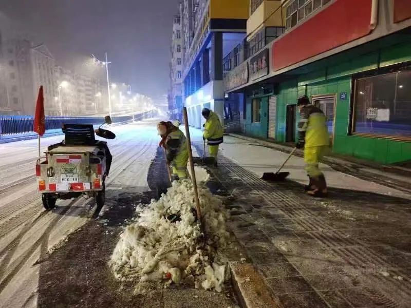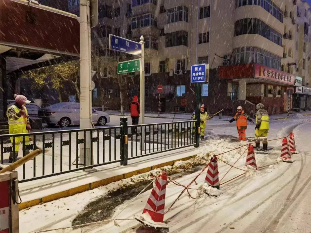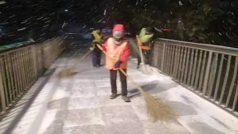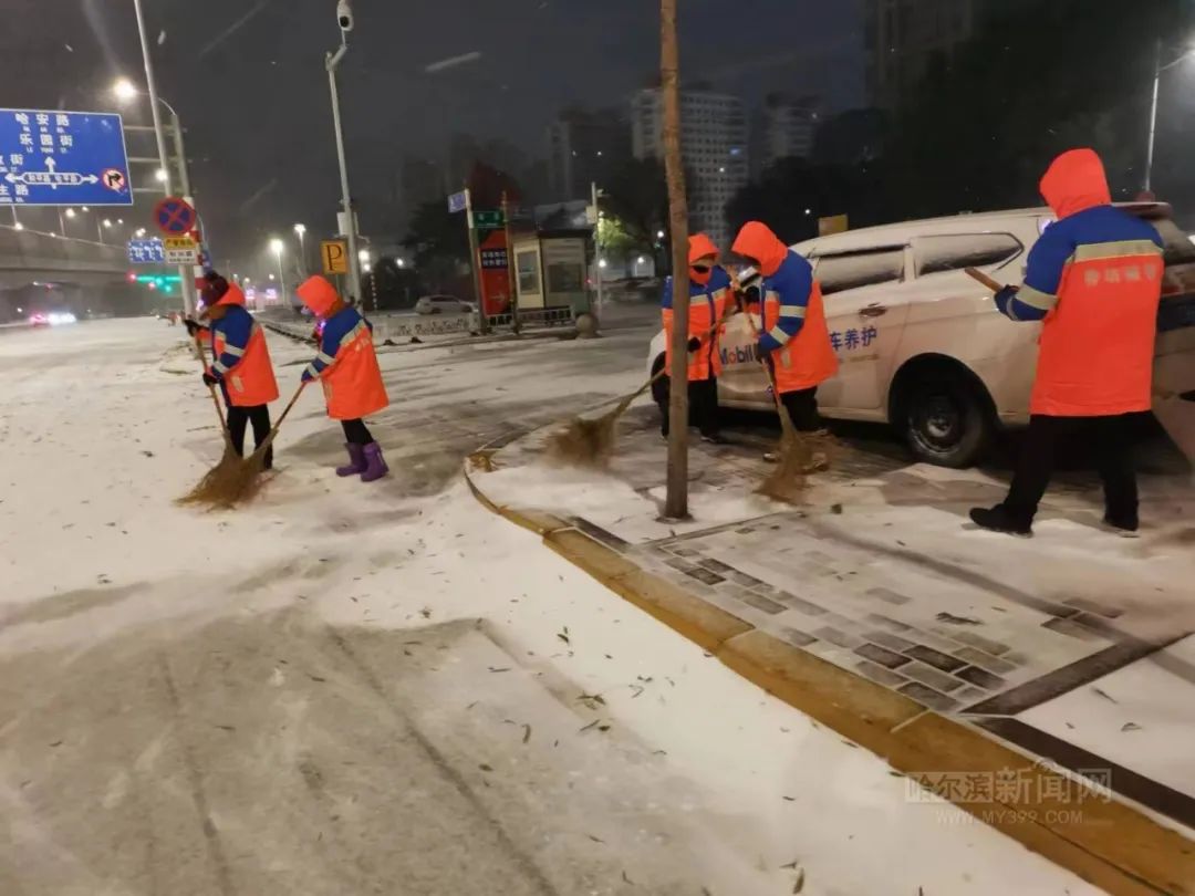 6日凌晨,哈市迎来今冬首场降雪,哈市环卫部门连夜奋战。道里区城管、环卫部门全员上阵——3000余名环卫工人第一时间上岗清雪外,领导班子分区包片下沉一线,后勤人员也全部加入清雪大军。