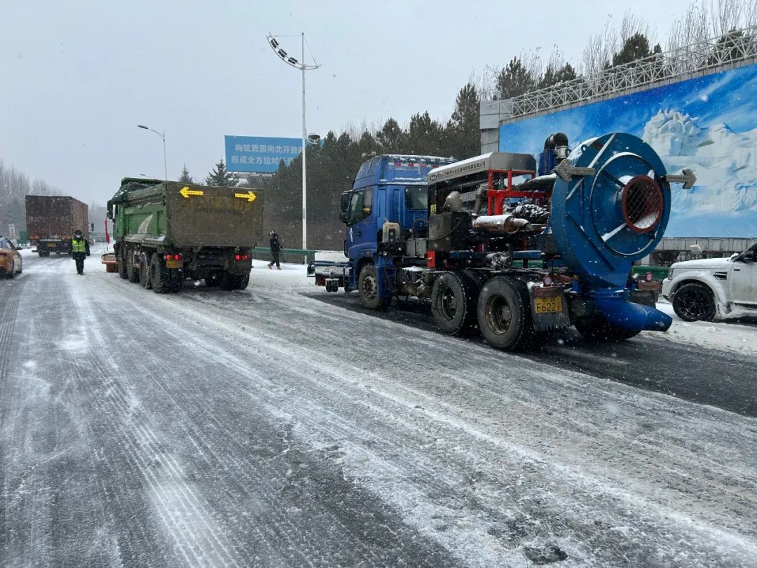 路政部巡查车、路政员全部投放一线路面,不间断巡逻管控,在车流量较大、重点路段等通过开启警灯、鸣笛示警、喊话提醒等方式,警示过往车辆注意安全、减速慢行,并及时采取临时管控重点车辆驶入高速公路,重点车辆分流管控、加强路面管理,严防车辆拥堵至主线等交通管制措施,将雪天带来的不利影响降至最低。收费部组织人员及时清扫车道的积雪,除了通过ETC、人工收费方式外,还增加人员采取手撕票的方式,全力保证车辆快速、顺利通过收费站,保证了收费站通行秩序。