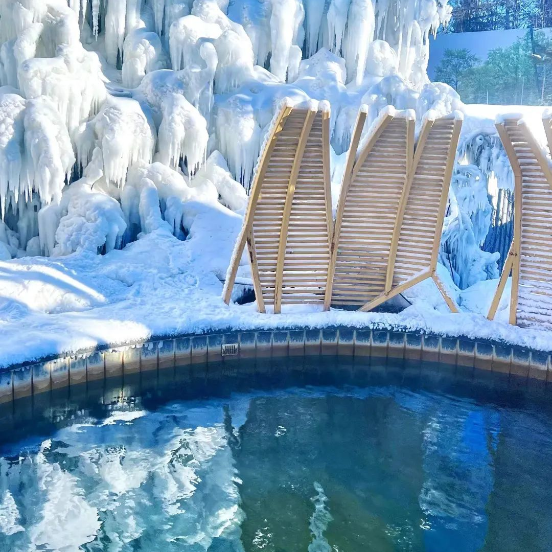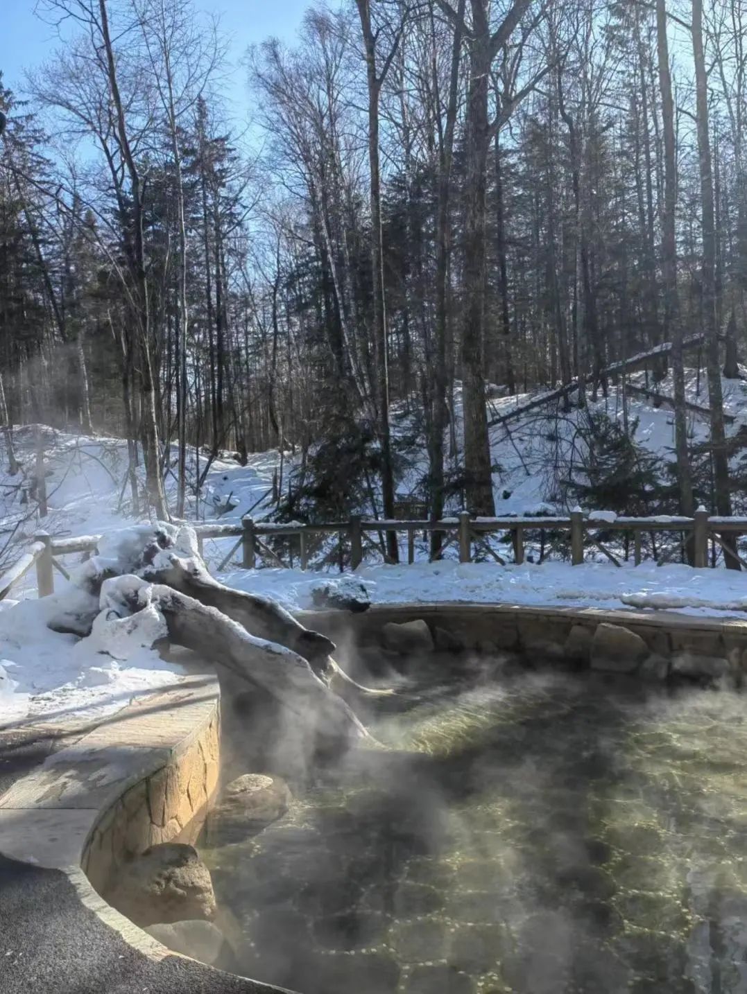在冬季零下30℃的环境下泡浴,可谓是“冰火两重天”!在冷热交替及矿物质作用下,有刺激皮肤收张、增强皮肤适应力和弹性,润肤养颜,抵抗衰老的效果哦。