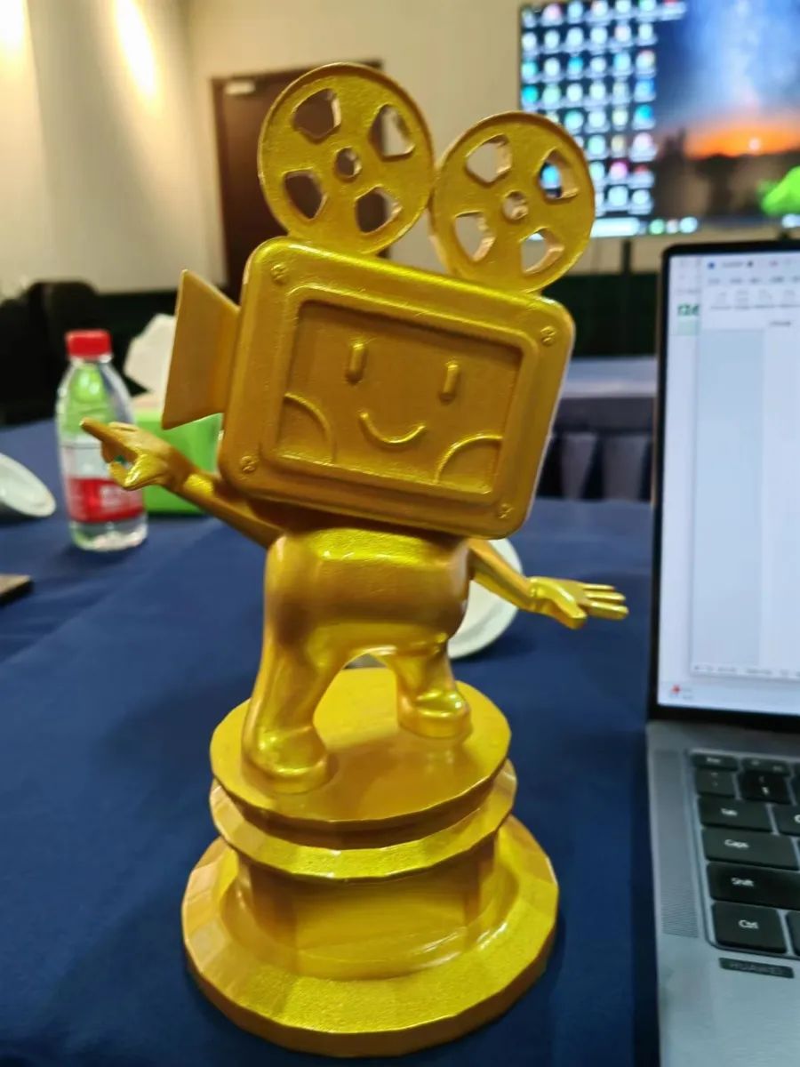“嘉小影”奖杯 钟菡 摄“它叫‘嘉小影’,是我们影院自己的IP形象。”他自豪地说。