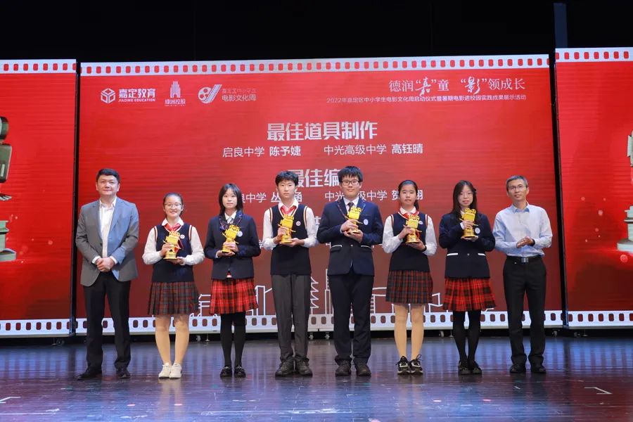 嘉定影剧院带领嘉定区启良中学学生拍摄《地下少先队》现场“我们会邀请家长和参加拍摄的孩子们一起走红毯,在海报前接受采访,发表感言,还将评选最佳演员、编剧、道具制作、影片等。和正式电影节一样,该有的,我们都有。”谈到即将于11月15日举办的第二届嘉定区中小学生电影文化周,每个人的眼神里都透露出兴奋。去年受客观条件限制,设想未能全部实现,如今时机成熟。戴金波拿出一尊“小金人”,这是他们早就准备好的奖杯。奖杯头部是老式胶片放映机造型,下面接了一个可爱的小人,握在手里沉甸甸的,将成为这些小小少年们“电影梦”的起点。