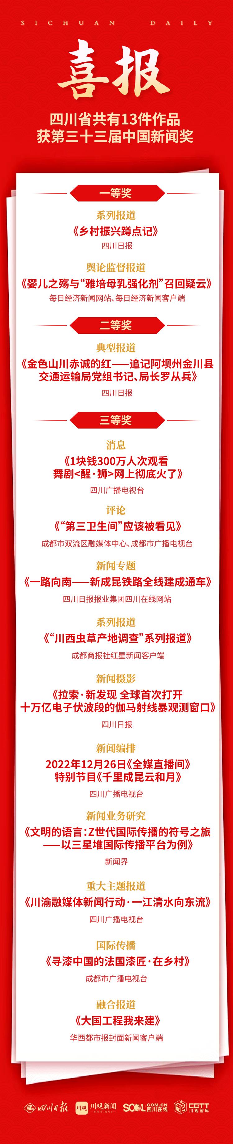 原标题:《第三十三届中国新闻奖公布,四川日报报业集团6件作品获奖》