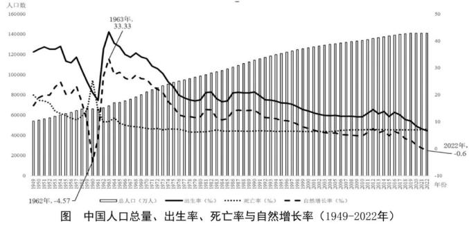 根据国家统计局数据,在新中国成立的1949年至2022年的人口变化中可以看到,除1961年出现人口负增长外,2022年是人口社会经济平稳发展的情况下出现了人口负增长。2022年,新中国自成立以来出生人口也是首次降至1000万人以下,随着死亡人口超过出生人口,2023年有较大概率仍将出现人口负增长。可以说,人口负增长将是我国未来经济社会发展的大趋势。当然,人口负增长不仅出现在中国,放眼世界,诸多发达国家都已进入人口负增长时代。综合而言,当下中国的人口变化呈现出了八大特征。
