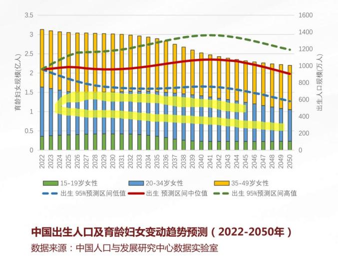 (二)超低生育率成为常态育龄妇女规模变动是影响出生人口变动态势的基础性因素。“十三五”时期,2034岁生育旺盛期妇女规模已开始出现下降( 年均减少340万 )。“十四五”时期20-34岁生育旺盛期育龄妇女规模开始加速下降,从2021年的1.34亿降至2025年的1.12亿,年均减少540万人,2029年至2038年在波动中有所增加,2038年为1.20亿,此后继续下降,2050年为0.82亿左右。