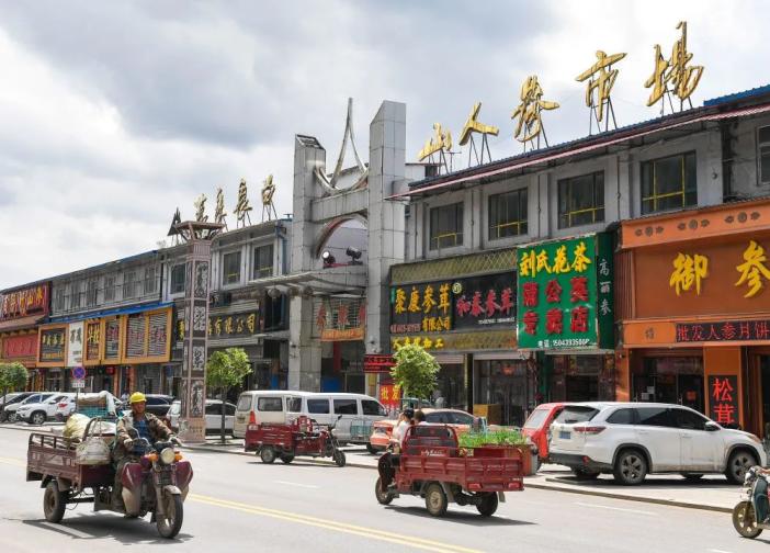 这是2020年8月28日在吉林省抚松县万良镇拍摄的万良长白山人参市场。新华社记者 许畅 摄作为“中国人参之乡”,抚松县人参产量居全国之首,曾出土过重达285克的野山参王。目前,白山市人参加工企业已超3500户,开发出人参食品、药品、保健品、化妆品等五大系列830余款产品,人参产业总产值现已达188.8亿元。