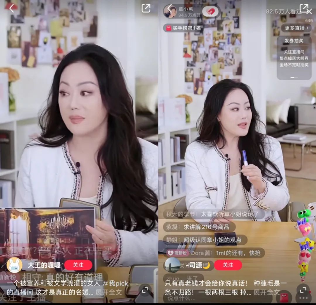 充满知识又富有修养,章小蕙的个人IP完美地适应了小红书的平台调性。也正因为如此,章小蕙直播间的客单价即便飚到了常规价格的几倍,像是168元的发圈、2000元的眼霜、1000元的睫毛膏,也依然能够在收到用户们的支持和好评。