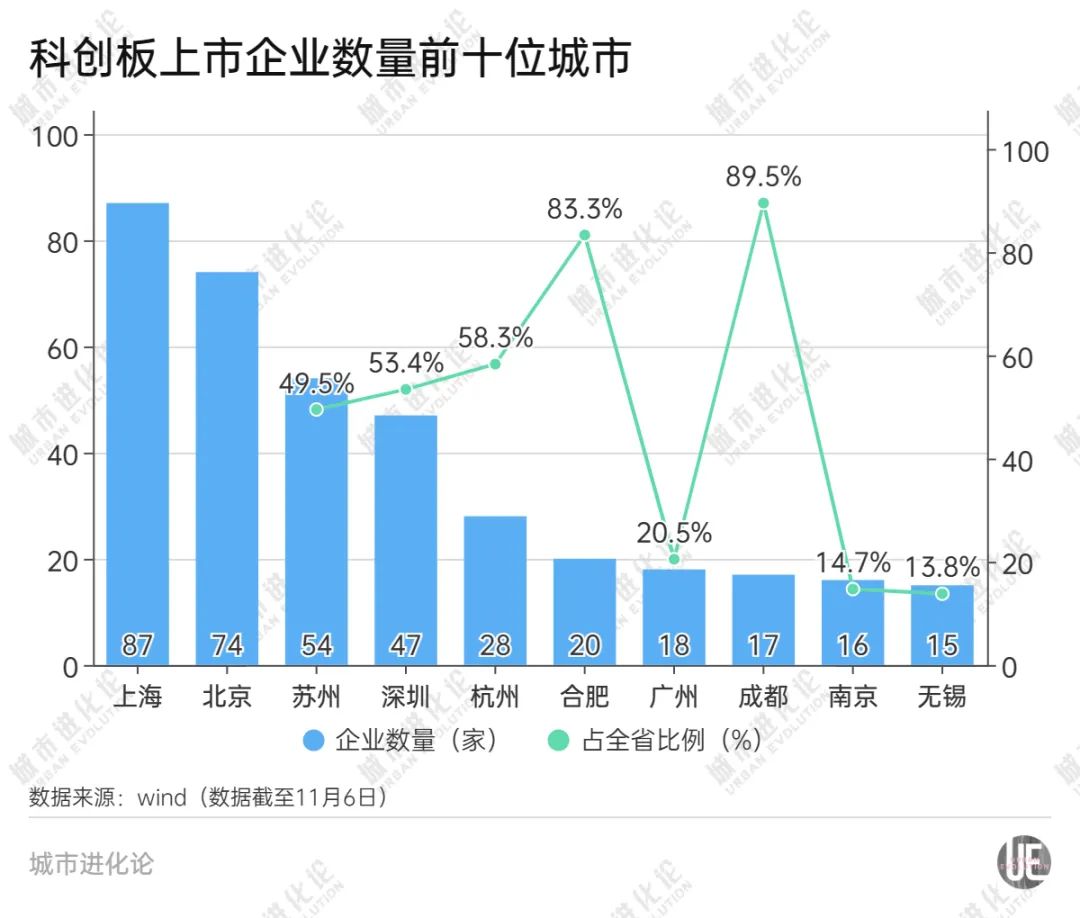 以苏州为例,截至目前,苏州共有A股上市公司216家,其中科创板上市企业就达到54家。也就是说,苏州每4家上市企业中,就有1家来自科创板。