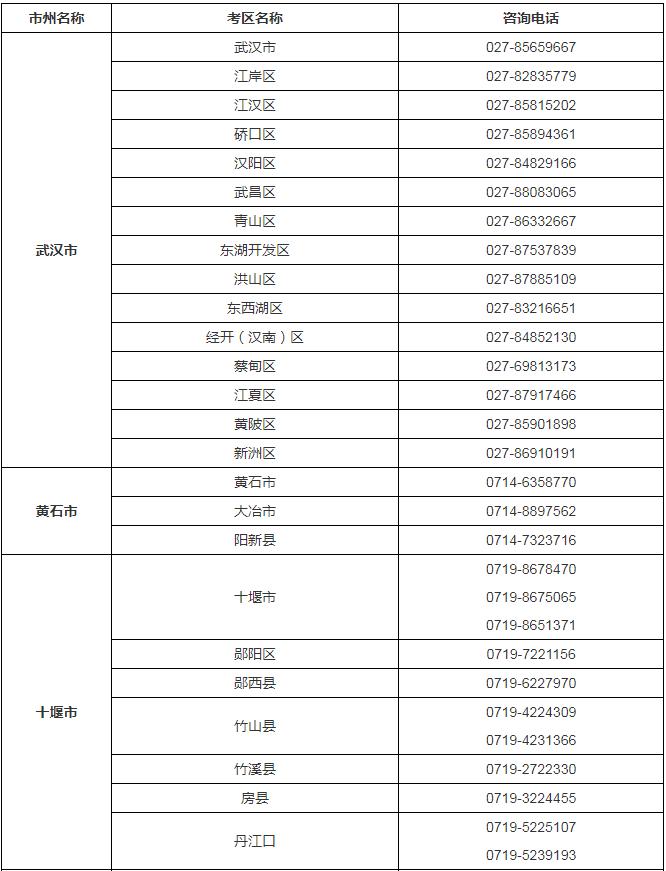 2024年湖北省各市、县考区普通高考报名咨询电话
