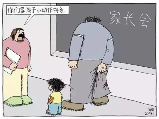 家长会上,老师跟学生父亲反映,孩子在学校的小动作特别多。