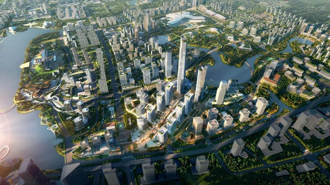 是金融总部核心发展轴,将打造一座超塔地标,重点布局金融机构总部和创新机构,目前市国发集团、苏州银行等多家市属国企初步达成入驻意向,将在核心发展轴建设10栋高层塔楼。