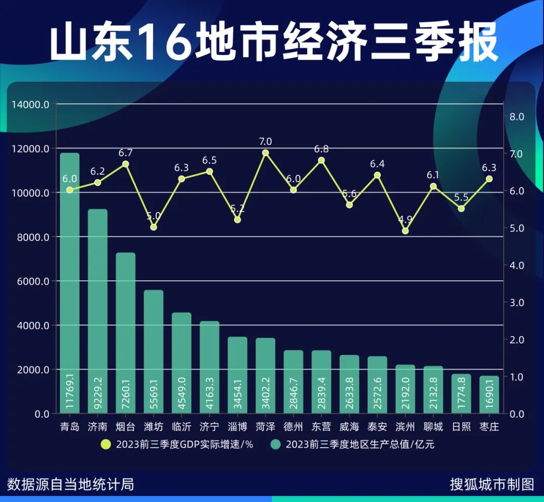 凭借济青烟三大“台柱子”的支撑,以及菏泽等“名角”的发力,山东经济得以在三季度“好戏”上演,斩获了一个颇具含金量的增长数字——6.0%,此增速不仅领先粤苏,还高出全国增速0.8个百分点。