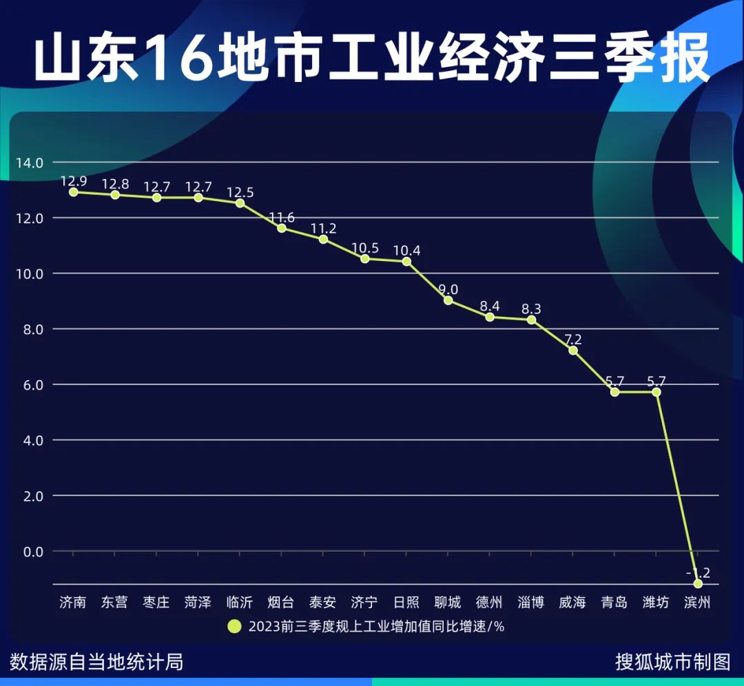 2023前三季度山东16地市工业经济表现/搜狐城市制图