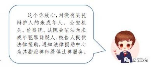 第一百零四条规定:对需要法律援助或者司法救助的未成年人,法律援助机构或者公安机关、人民检察院、人民法院和司法行政部门应当给予帮助,依法为其提供法律援助或者司法救助。法律援助机构应当指派熟悉未成年人身心特点的律师为未成年人提供法律援助服务。