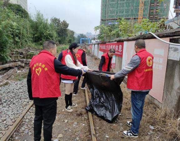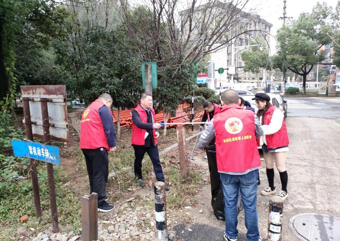 区退役军人事务局一行人到贤湖村铁路沿线开展“党建+环境卫生大扫除”活动。