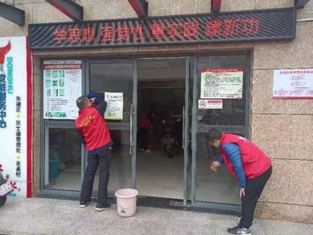 区民政局一行人到豫章街道东濠街社区开展“党建+环境卫生大扫除”活动。